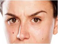 Drawing the brows together to express displeasure.