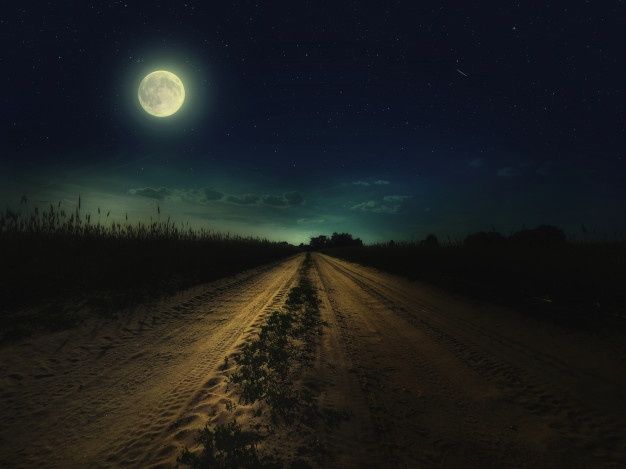 The moon that is alone in the sky, unaccompanied by the stars