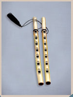 Pastoral double clarinet of the Uzbek people of Central Asia. Both bamboo pipes have six or seven fingerholes in parallel, and an idioglot reed held entirely within the mouth. The pipes are often tied together